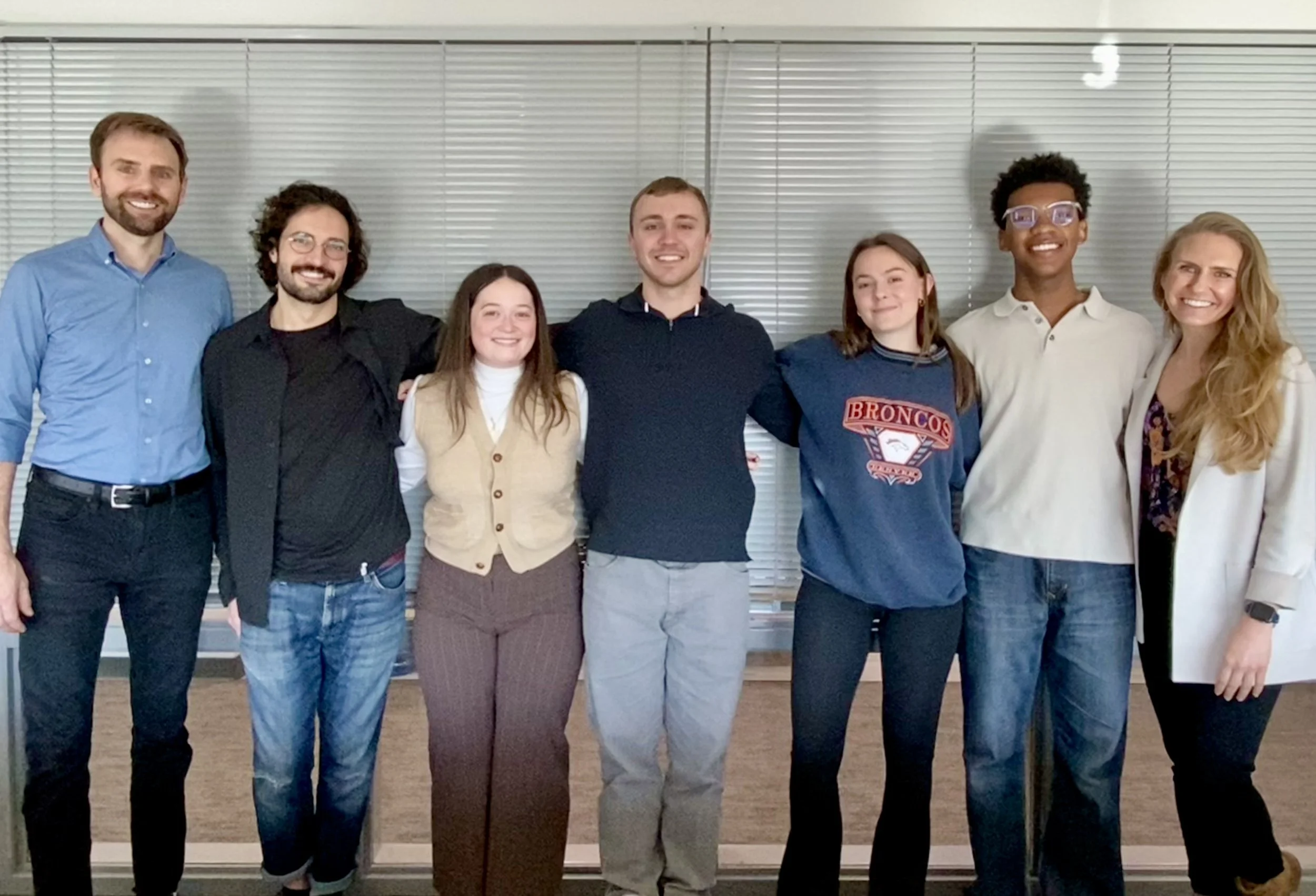 Mike, Calvin, Amy, Dustyn, Sydney, Elijah, and Alisa at Lab Meeting (2025)